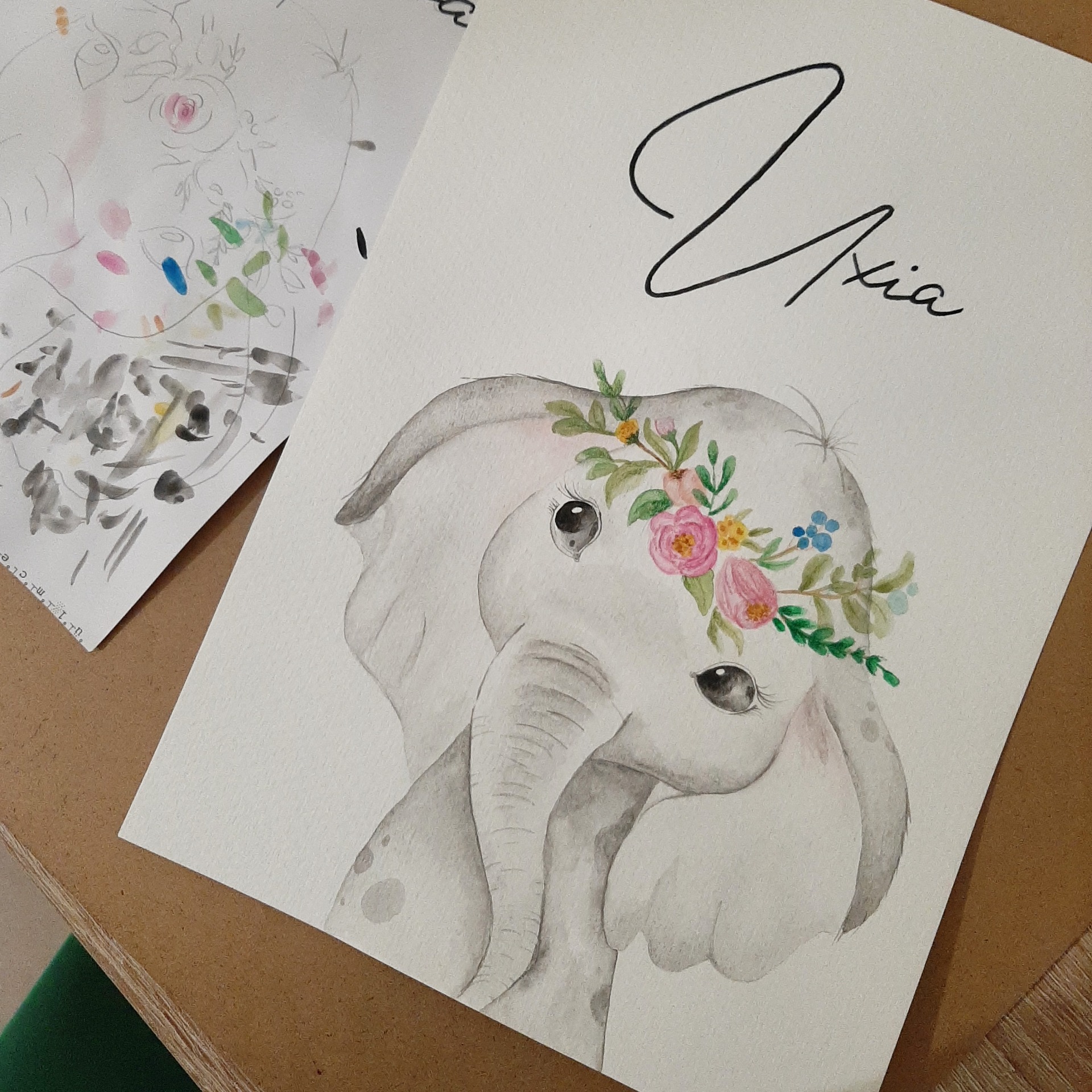 Lámina personalizada, original, pintada a mano sobre papel especial para acuarela de 370g.